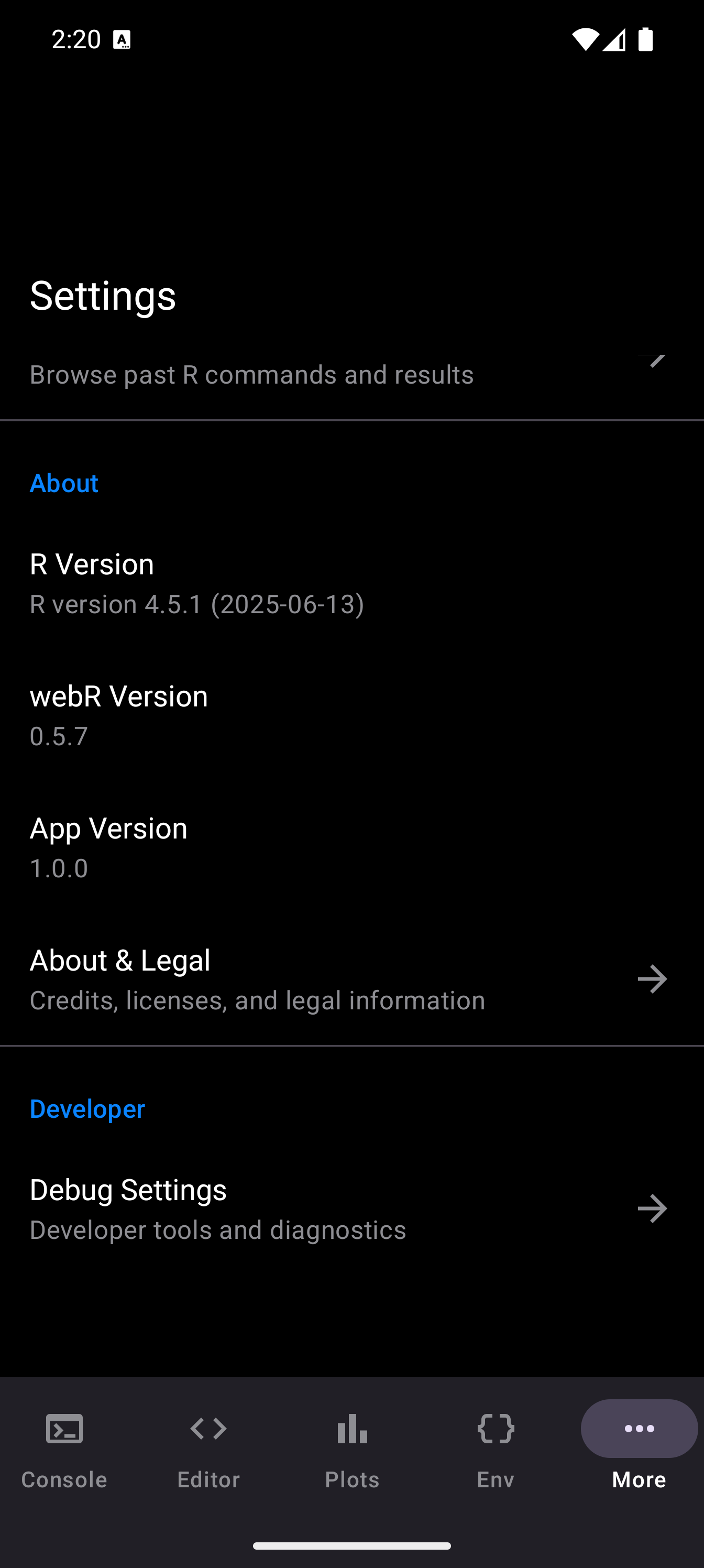 | webR Version | The version of the webR WebAssembly runtime used by the app. |