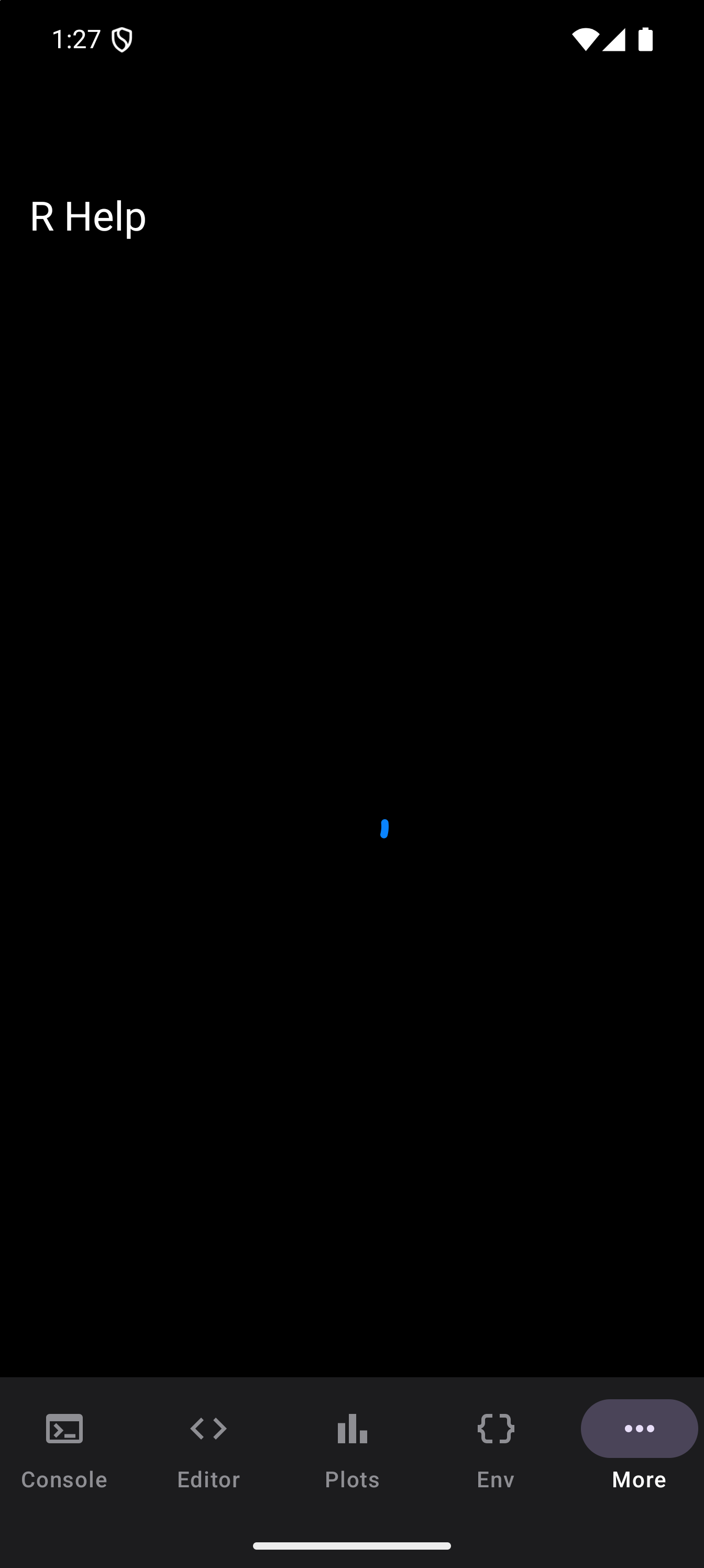 R ships with extensive documentation for every function in base R and for every function in installed packages. The Help screen in webRoid provides a native interface to this documentation. Help pages are parsed from R’s internal RdXML format and rendered natively as styled text, so they look clean and are easy to read on a mobile screen.