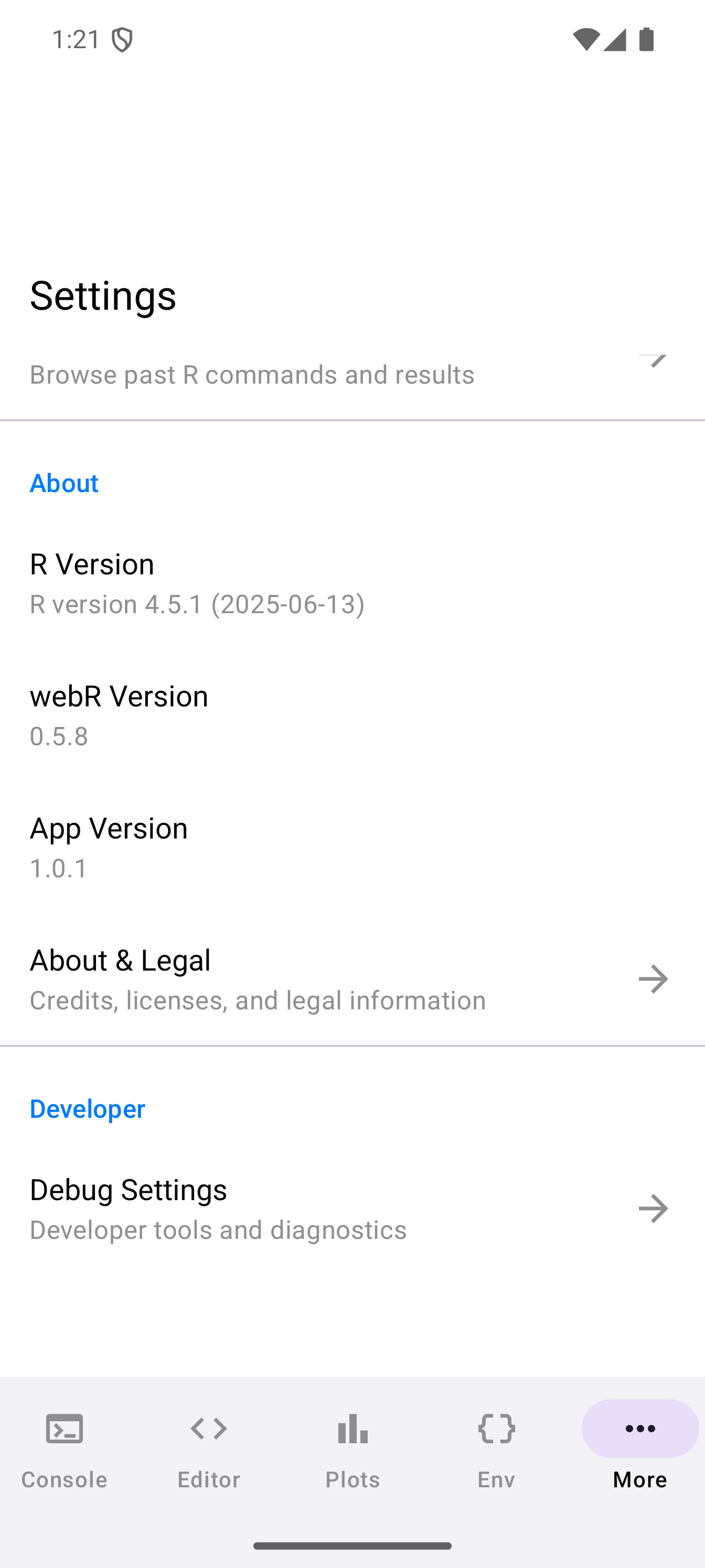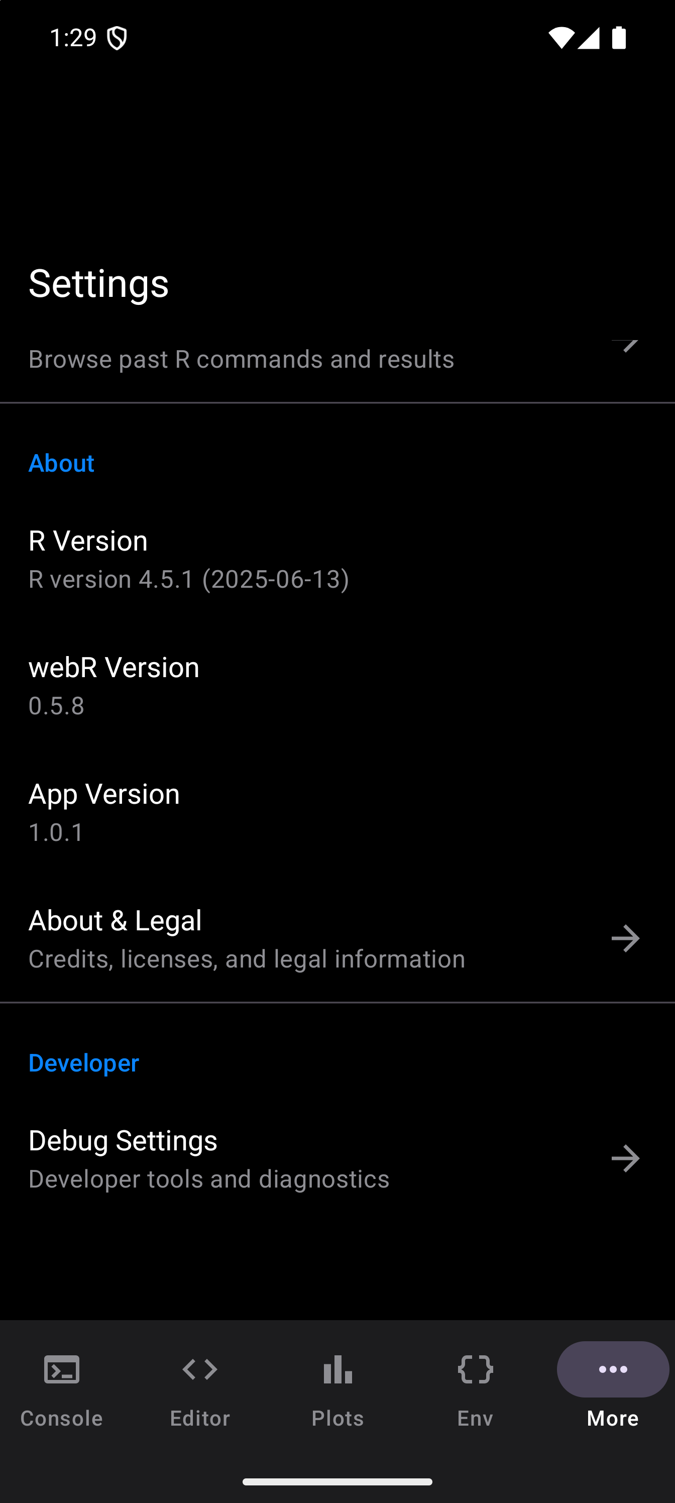 | webR Version | The version of the webR WebAssembly runtime used by the app. |